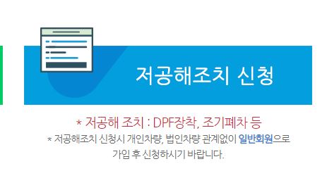 1. 배출가스 등급제 사이트에 접속하여 조기폐차 보조금 지급 대상인지 확인이 가능합니다. 해당 홈페이지에서 '저공해 조치 신청'을 통하여 진행할 수 있습니다.