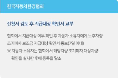 2. 신청을 하고 나면 7일 이내로 한국자동차환경협회에서 조기폐차 보조금 지급대상 확인서를 통보합니다.