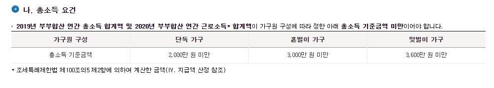 2020년에 본인과 배우자의 소득이 근로소득으로만 구성된 거주자여야 합니다.