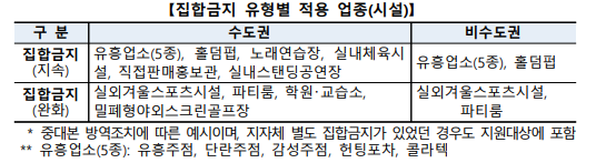 (집합금지) 중대본 지자체의 방역조치로 집합 금지*된 사업체