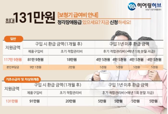 그리고 현재 정부에서 청각장애등급 소지자에 한해서 보청기 국가 보조금 지원을 해주고 있습니다. 최대 131만 원까지 환급이 가능하니 알아보고 잊지 말고 챙기세요!