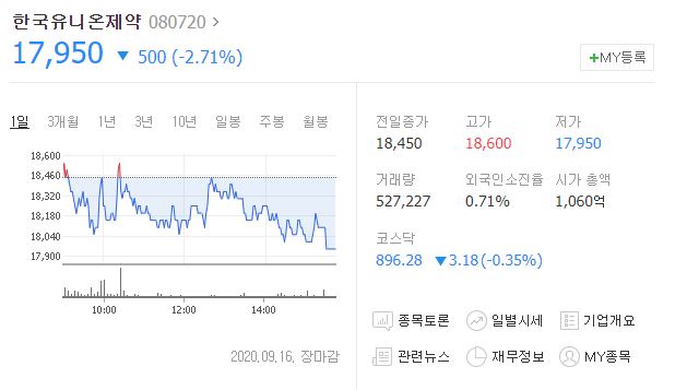 한국유니온제약 - 고려제약과 마찬가지로 백신을 판매중인 제약회사입니다.